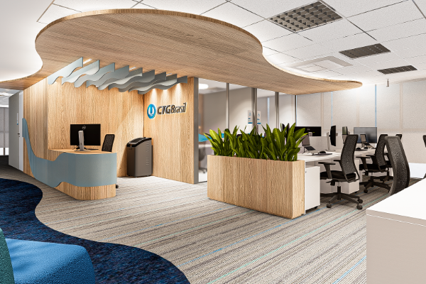 A modernização do escritório da CTG uniu o alto padrão da sede paulista a um design focado na inovação e na experiência do colaborador. Transformamos a laje corporativa existente através de uma releitura que ampliou a capacidade de mesas e criou um layout flexível para o crescimento da equipe. Um dos grandes diferenciais do projeto foi a forma como aprimoramos também o branding no espaço, traduzindo a essência da empresa em ambientes que exalam colaboração. Para responder às novas dinâmicas de trabalho, entregamos salas de reuniões ágeis, espaços privativos para calls online e áreas voltadas à qualidade de vida, como uma exclusiva sala de massagem, resultando em um ecossistema inteligente e acolhedor.