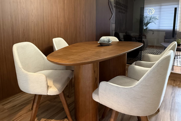 A transformação de uma antiga casa na nova sede da Farias Advocacia é um marco de arquitetura corporativa contemporânea. O projeto converteu a estrutura original em um escritório elegante, pensado estrategicamente para transmitir segurança e autoridade. Um dos grandes diferenciais foi a forma como aprimoramos também o branding no espaço, utilizando materiais nobres e a madeira como protagonista para garantir um acolhimento empático aos clientes em momentos complexos. O resultado é um ambiente sofisticado que cria uma atmosfera de prestígio e distinção, elevando o nível da experiência e agregando valor imediato aos serviços jurídicos prestados.