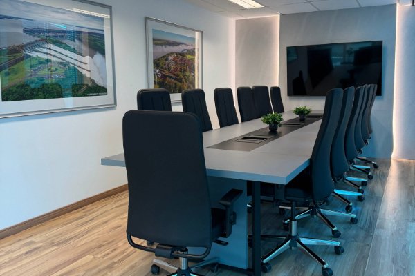 A nova sede da Itaipu Parquetec em Curitiba foi um desafio de excelência: um projeto de arquitetura corporativa e obra turn key executados no prazo de 60 dias. Transformamos uma laje corporativa em um ambiente de design elegante e clássico, ideal para apoiar as importantes tomadas de decisão da liderança. Um dos grandes diferenciais foi o desenvolvimento do branding no espaço, integrando de forma sutil as cores da marca e materiais que representam a sustentabilidade. O resultado é um escritório que equilibra a seriedade institucional exigida com o máximo de conforto e aconchego, traduzindo a identidade da empresa na arquitetura.