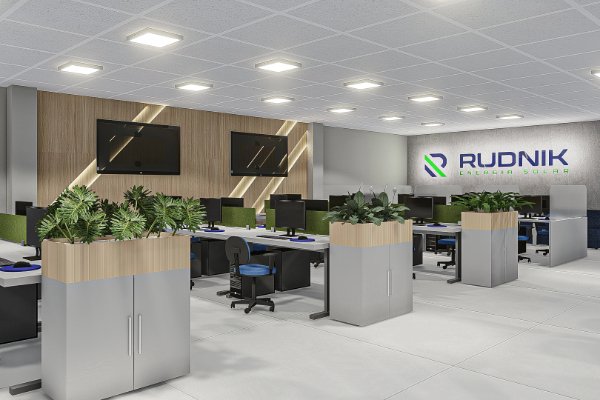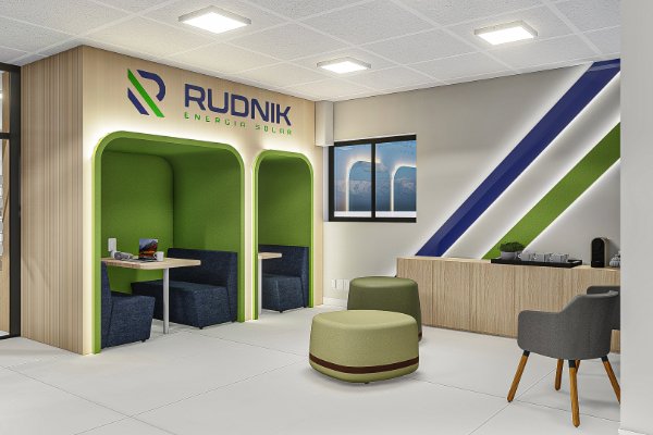 A transformação da sede da Rudnik Solar redefiniu o conceito de arquitetura corporativa para a empresa, convertendo uma laje antes segmentada e engessada em um ecossistema de trabalho aberto e flexível. O projeto eliminou barreiras físicas que limitavam o crescimento, garantindo ao mesmo tempo o isolamento acústico perfeito para as áreas privativas essenciais. Um dos grandes diferenciais foi a forma como aprimoramos também o branding no espaço: cada ângulo foi pensado para traduzir a inovação e a sustentabilidade da marca, utilizando elementos remetendo a placas solares e explorando as cores e formas da logo. O resultado é um escritório dinâmico que une a equipe, aumenta a produtividade e