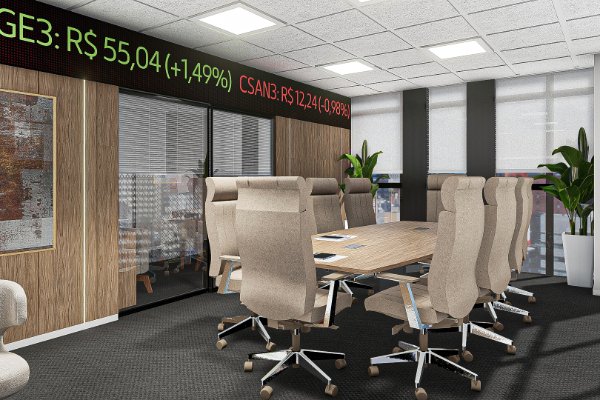 imediato a qualidade e a singularidade da instituição. Um dos grandes diferenciais é a forma como aprimoramos também o branding no espaço, conectando o design exclusivo a uma área de trabalho altamente funcional e a uma sala de reuniões de alto padrão que impressiona pela sofisticação. O resultado é um escritório que materializa a excelência do banco em cada detalhe físico.